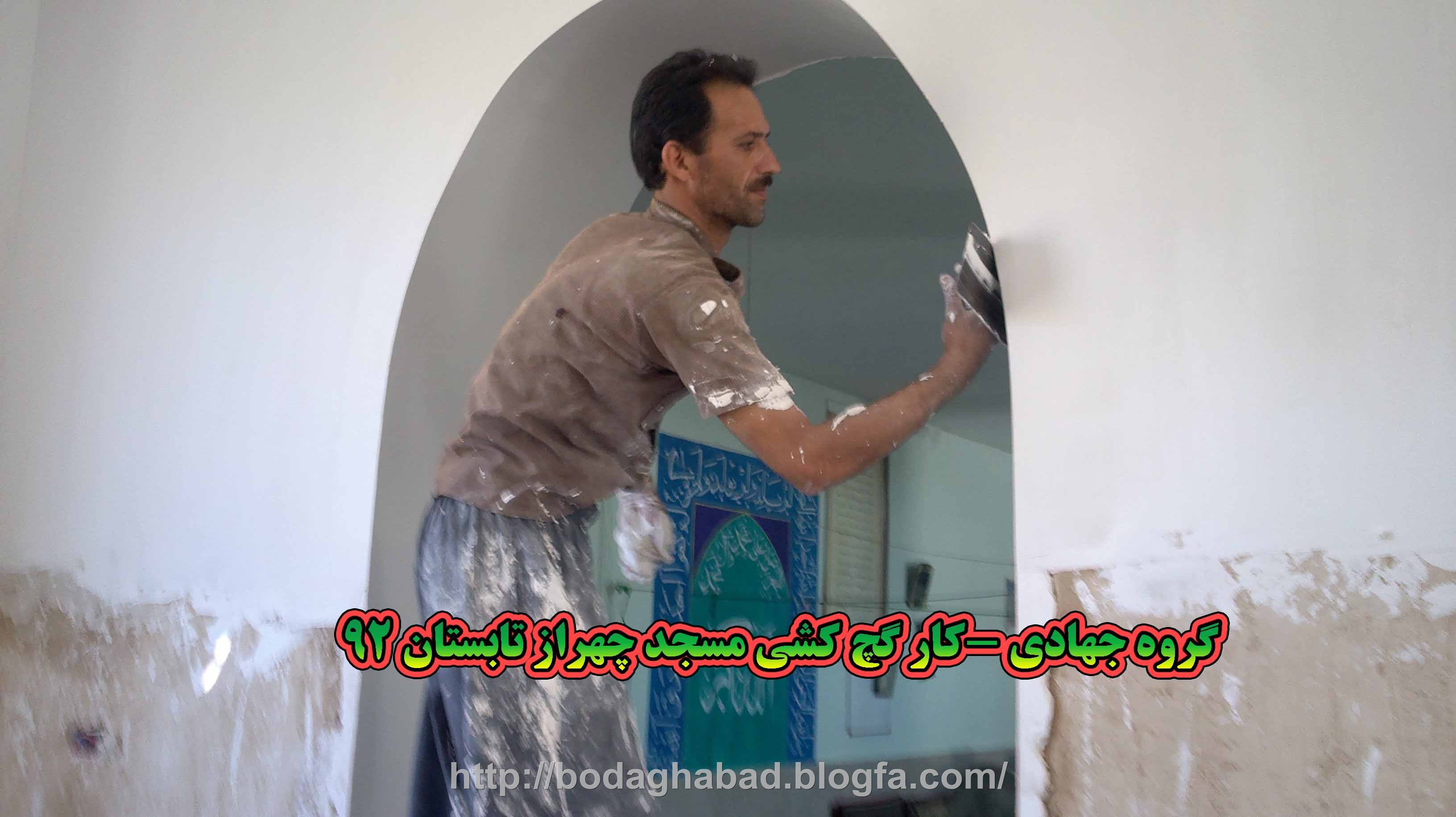 بنّاها هم با ظرافت وعجله داشتند گچ کاری مسجد را تموم می کردند ....